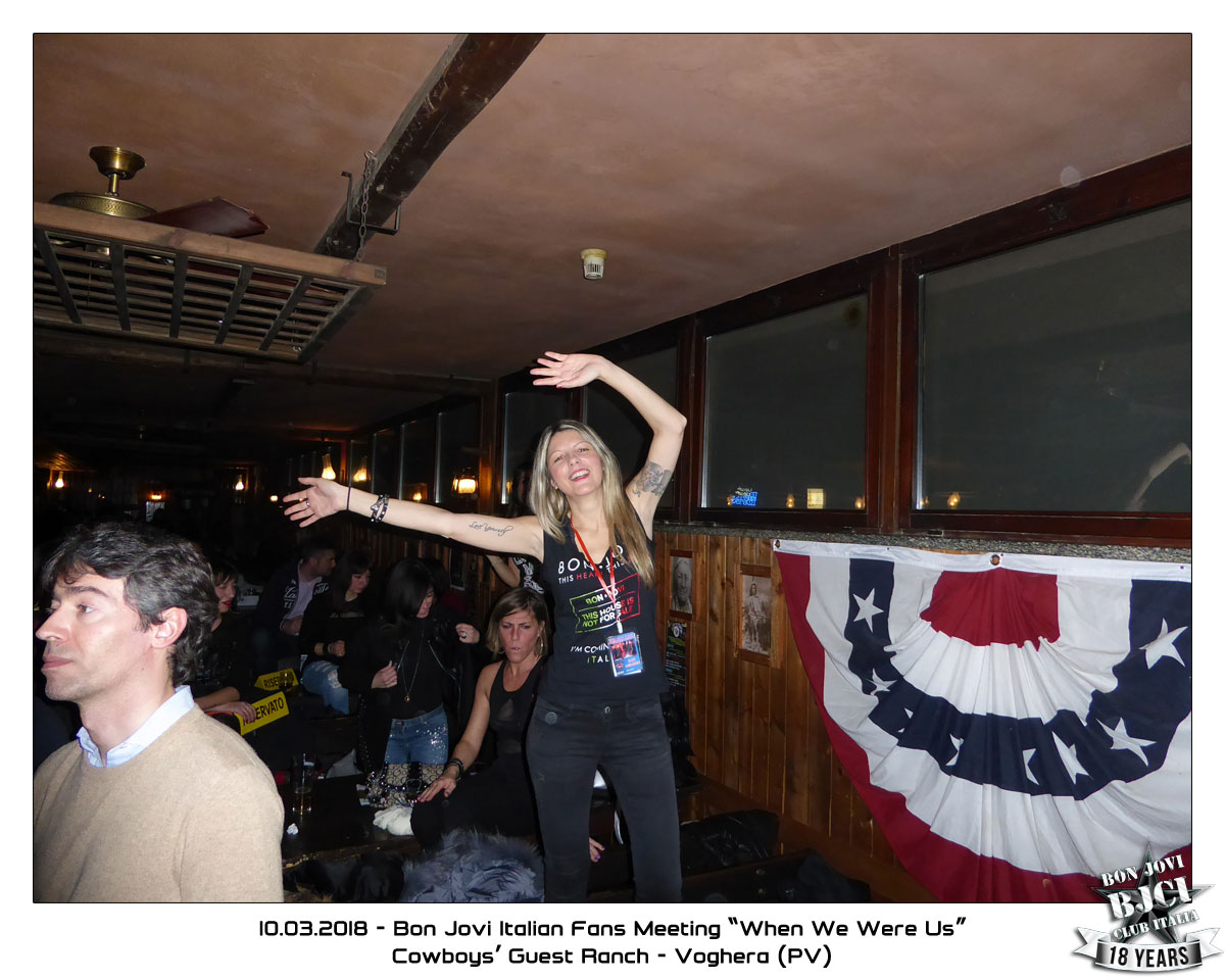 Il 10 marzo 2018 si ricorderà per tanto tempo! Questo Fans Meeting per celebrare il B-day di Jon e quest’anno anche l’introduzione dei Bon Jovi alla Rock n’Roll Hall Of Fame è stato davvero incredibile. Siamo tornati al Cowboys Guest Ranch di sabato sera e possiamo dirlo senza esitazioni: è stato un successo! Con il Saloon praticamente pieno a tappo e un atmosfera davvero calda in un ambiente incredibilmente bonjoviano, dove anche l’ultima persona in fondo al Saloon saliva sui tavoli a cantare e saltare!