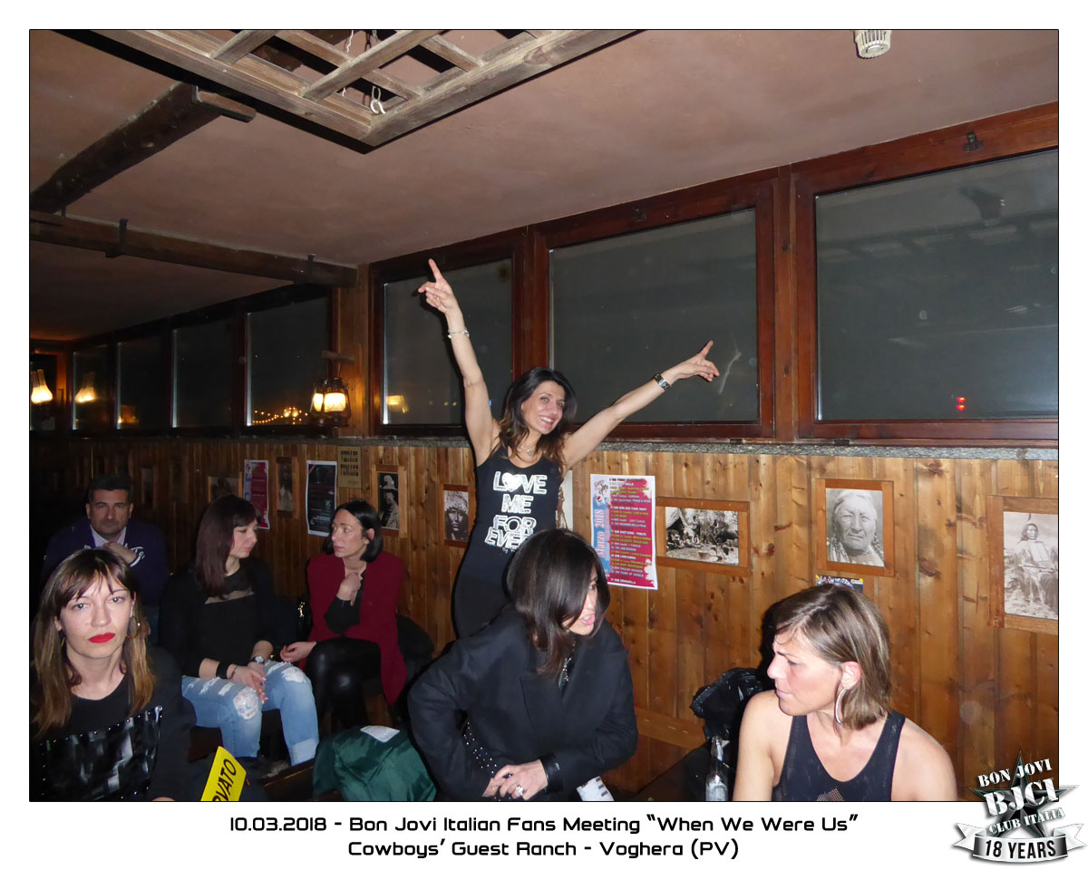 Il 10 marzo 2018 si ricorderà per tanto tempo! Questo Fans Meeting per celebrare il B-day di Jon e quest’anno anche l’introduzione dei Bon Jovi alla Rock n’Roll Hall Of Fame è stato davvero incredibile. Siamo tornati al Cowboys Guest Ranch di sabato sera e possiamo dirlo senza esitazioni: è stato un successo! Con il Saloon praticamente pieno a tappo e un atmosfera davvero calda in un ambiente incredibilmente bonjoviano, dove anche l’ultima persona in fondo al Saloon saliva sui tavoli a cantare e saltare!