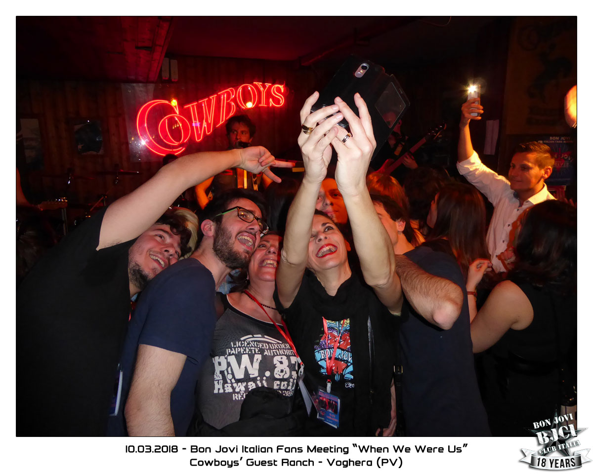 Il 10 marzo 2018 si ricorderà per tanto tempo! Questo Fans Meeting per celebrare il B-day di Jon e quest’anno anche l’introduzione dei Bon Jovi alla Rock n’Roll Hall Of Fame è stato davvero incredibile. Siamo tornati al Cowboys Guest Ranch di sabato sera e possiamo dirlo senza esitazioni: è stato un successo! Con il Saloon praticamente pieno a tappo e un atmosfera davvero calda in un ambiente incredibilmente bonjoviano, dove anche l’ultima persona in fondo al Saloon saliva sui tavoli a cantare e saltare!