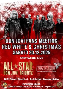 BON JOVI FANS CHRISTMAS MEETING 2025 “RED, WHITE & CHRISTMAS” SABATO 20.12.2025 BJCI ★ 25th ANNIVERSARY 2000-2025 The Best Bon Jovi Party In Town “Un 2025 che si conclude con l’annuncio più bello: Bon Jovi Forever Tour 2026” SABATO 20.12.2025 Open 19:30 • Showtime 21:15 COWBOYS GUEST RANCH • Voghera (PV) INGRESSO GRATUITO […]